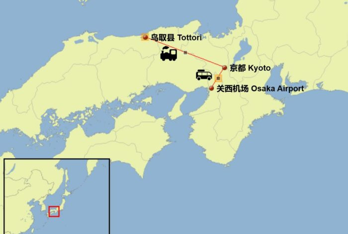 抵达关西机场后,与同行旅客会合,集体乘车前往京都酒店。
